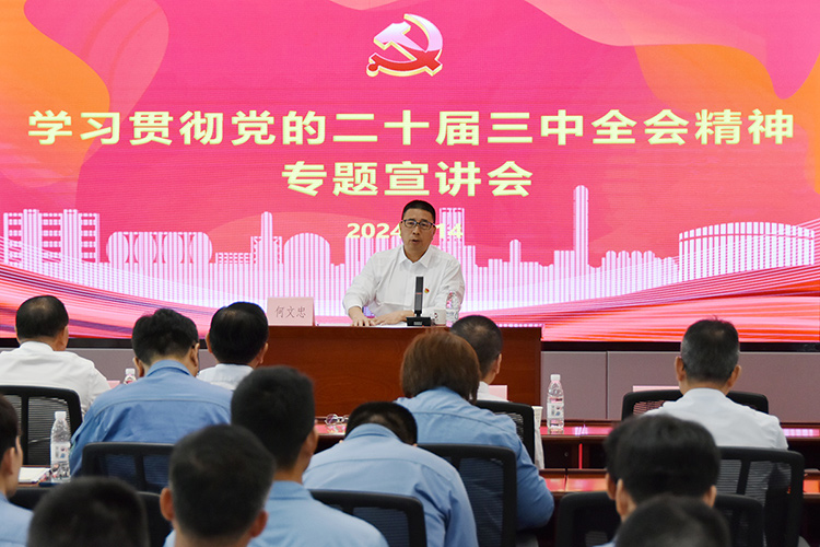 9月14日上午,巨正源舉辦學習貫徹黨的二十屆三中全會精神專題宣講會。公司黨委書記、董事長何文忠作宣講報告,動員廣大黨員干部職工把思想和行動統(tǒng)一到全會精神上,把智慧和力量凝聚到目標任務(wù)上來,全力以赴推動各項工作不斷取得新突破、新成效,奮力譜寫中國式現(xiàn)代化巨正源實踐新篇章。