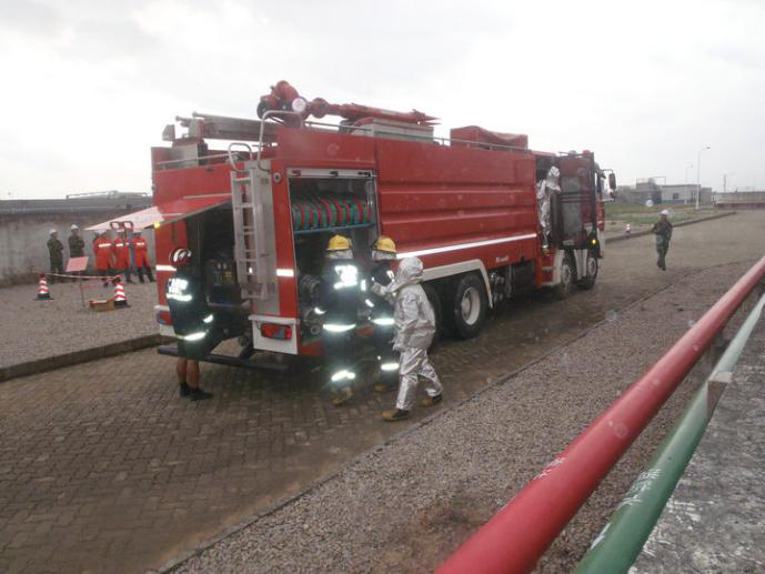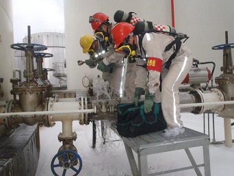 應急基地專業(yè)堵漏隊對現(xiàn)場氣體檢測和實施堵漏