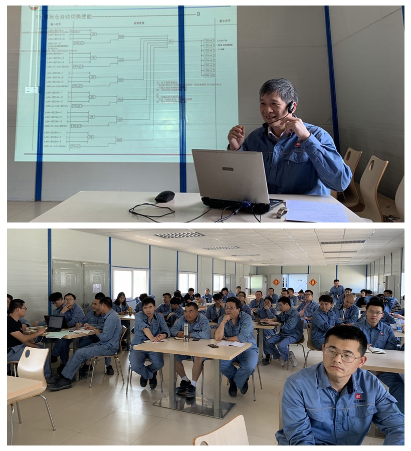 培訓(xùn)由工程部副總工程師王成林主講,從準(zhǔn)備工作,邏輯圖目錄編排(按輸出和功能)和PC站軟按鈕清單,氣流輸送的通常操作步驟,料倉(cāng)的選擇、確認(rèn)及切換,氣動(dòng)換向閥控制,輸送風(fēng)機(jī)的選擇、確認(rèn)、控制及風(fēng)機(jī)出口氣動(dòng)蝶閥控制等,并以風(fēng)送A1線為例,做了具體邏輯的解讀。參訓(xùn)人員紛紛表示,受益良多,此次課程的邏輯學(xué)習(xí)也適用其他系統(tǒng),王成林副總工的工匠精神同樣值得我們學(xué)習(xí)。
