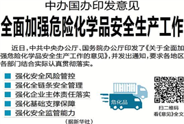 近日,中共中央辦公廳、國務(wù)院辦公廳印發(fā)了《關(guān)于全面加強(qiáng)危險化學(xué)品安全生產(chǎn)工作的意見》,并發(fā)出通知,要求各地區(qū)各部門結(jié)合實際認(rèn)真貫徹落實。
